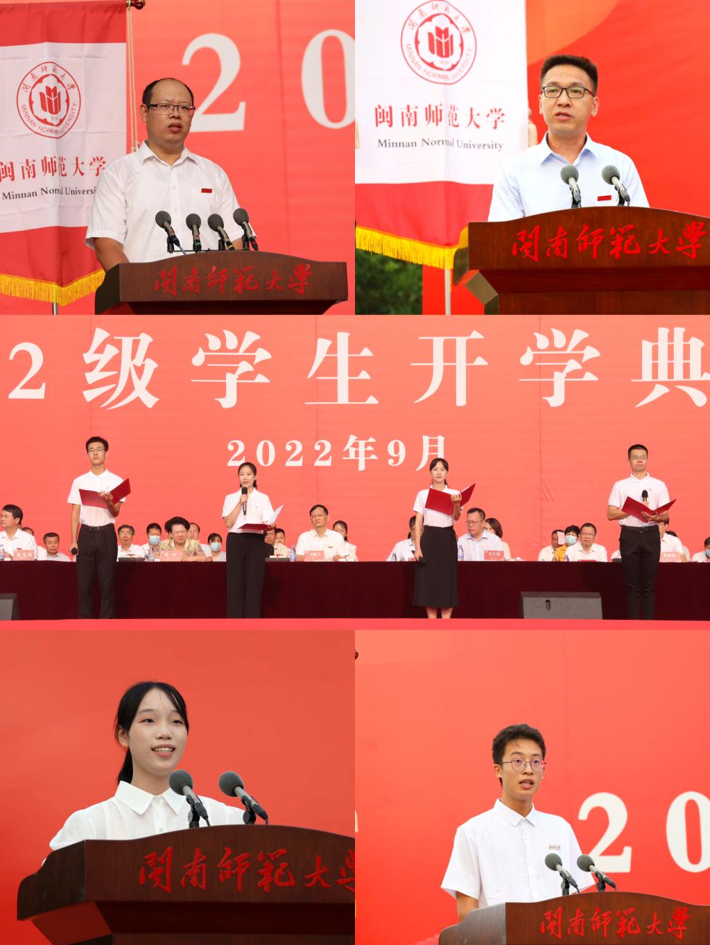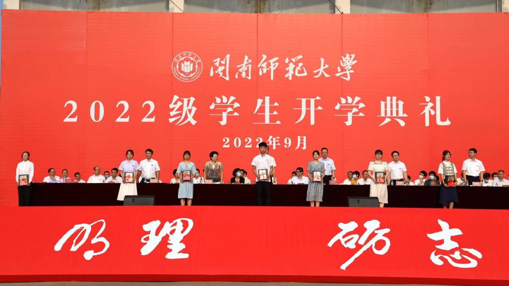 校长李顺兴作了题为《积淀自己 赋能家国》的讲话。李顺兴指出,今年八月,闽南师范大学正式成为博士学位授予单位,开启了省一流大学建设的新征程,学校以历史性的崭新面貌、时代性的昂扬姿态迎接每一位有梦想、有志向的莘莘学子。他希望同学们要博各家之学,悟人性之真,坚持自律、勤以养德,及时反省、时刻纠偏,懂得尊重、善于发现美,以勤奋铺就未来之路;要明学问之理,开创新之河,打好扎实的专业基础、及时转变学习观念、保持强烈的求知欲望,以探索打开真理之门;要砺复兴之志,笃报国之行,树牢家国情怀、坚持主流意识、勇于躬身实践,以实干奉献一己之力;要保持健康的体魄去追逐梦想,保持平常的心态去接触自然,保持谦逊的姿态去对待同学,在充满希望的时代中,完善自身、赋能家国,书写属于自己的闽南师大精美故事。