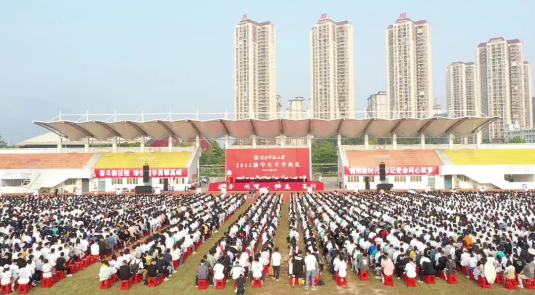 学校各机关、教辅单位主要负责人,各学院党政主要负责人、教师代表、新生辅导员和5800多名新生参加开学典礼。