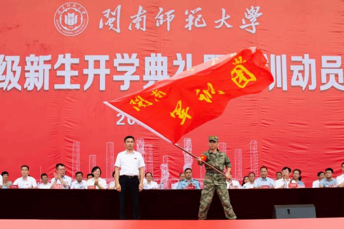 吴彬镪作题为《向下生根向阳而行》的讲话。他指出,今年恰逢学校建校65周年、本科办学60周年、研究生办学20周年、更名大学10周年。一代代闽南师大人响应国家号召、顺应时代潮流,发展成了一所具有优秀办学传统、特殊战略价值的高校。他希望同学们深刻领悟“博学、明理、砺志、笃行”的校训内涵,把家国情怀刻在骨里,热爱我们的祖国,坚持自己的梦想,不忘来路和初心,浇筑理想信念的精神支柱。把自信自强记在心里,做好规划,保持努力,包容不同,涵养品格和毅力,拓宽通往未来的阳光大道。把知识能力学在手里,扎实专业基础形成积淀,突破惯性思维推动创新,适应时代需求锻造价值,打造实现跨越的强大引擎。他强调,在军训期间要一切听从指挥,挺起腰杆,鼓足底气,从严要求自己,克服娇气脾气,磨炼身心意志,增强集体荣誉感,坚持必胜的信念,展现新闽南师大人一往无前的精气神,一笔一划勾勒青春最美的风景,谱写出人生最华丽的篇章。