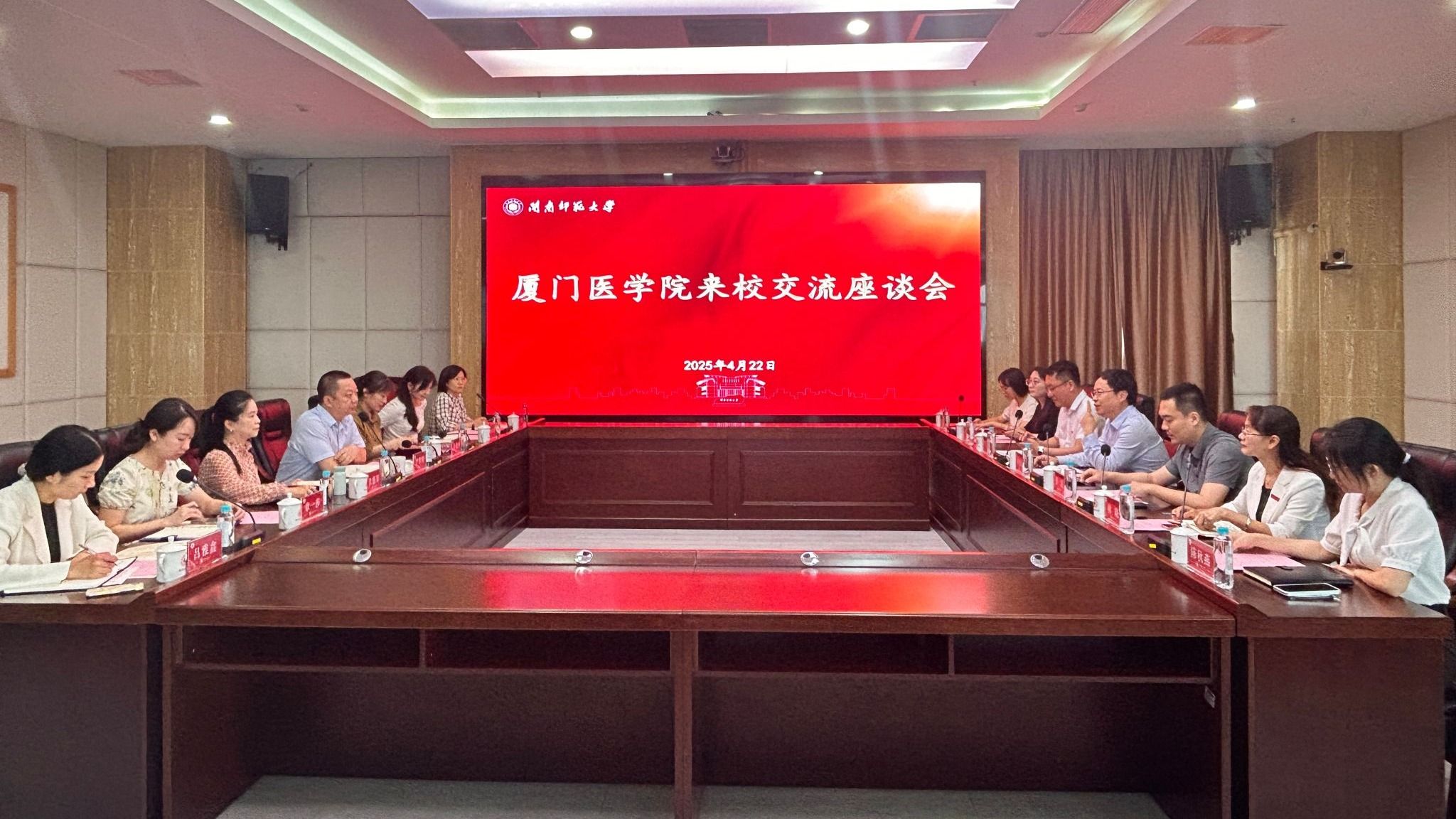 4月22日上午,厦门医学院副校长李黎明一行来best365官网登录入口调研,就闽台合作、港澳台招生、两岸研学活动、“十五五”规划编制、融媒体中心建设等方面进行交流。双方在科技信息楼1607会议室举行座谈会,校党委副书记林致远出席。