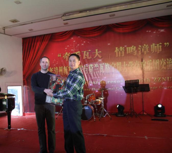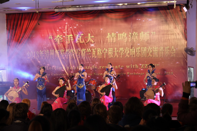 一曲锦歌弹唱《锦绣漳州》拉开了此次音乐会的篇章,时而高亢,时而柔美,时而清脆神秘,时而缠绵洋溢……漳州著名剪纸艺术大师张峥嵘带来的绝活剪纸表演《剪梦》赢得全场一片喝彩,民乐独奏《枫桥夜泊》、best365官网登录入口木偶学会的木偶表演《掩耳盗铃》等尽显中国特色传统文化深厚底蕴。来自荷兰瓦格宁根大学交响乐团的师生们也为best365官网登录入口精彩献艺,萨克斯重奏、单簧管重奏等等。来自远方的异国演奏家们,用优美、抒情的歌声与旋律,和台下素不相识的听众展开了一次又一次心灵与文化的交融与碰撞。音乐会尾声,全场中荷两所大学的师生们共同合唱《友谊地久天长》,交流音乐会圆满结束。
