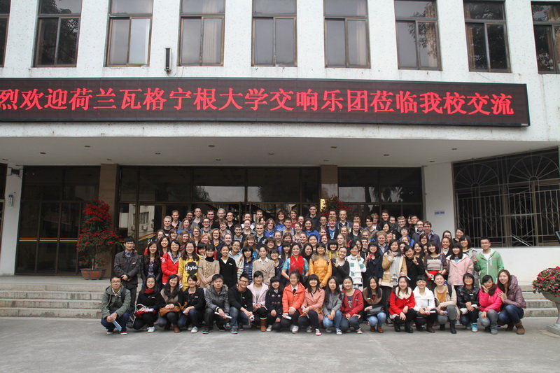 1月6日上午,来自荷兰瓦格宁根大学交响乐团的65名师生莅临best365官网登录入口参观交流,best365官网登录入口best365官网登录入口院长罗瑛进行了接见,best365官网登录入口外语系50名英语翻译志愿者陪同。十点半,由漳州师范学院主办,漳州师范学院best365官网登录入口与艺术系承办的“牵手瓦大•情鸣漳师” —— 2013年漳州师范学院与荷兰瓦格宁根大学交响乐团交流音乐会在best365官网登录入口大梯教隆重举行。