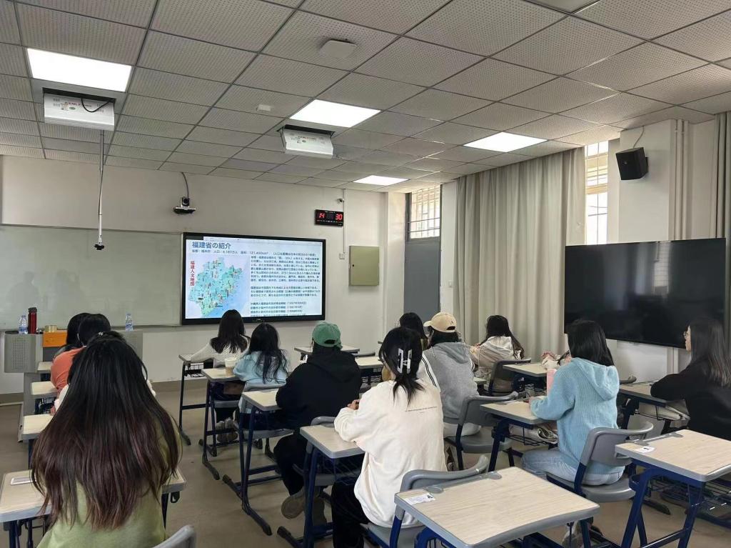 活动中,老师和同学们跟随当地中日友好人士的镜头,线上游览了琉球馆、福州园、三坊七巷、首里城公园、国际大道等名胜古迹和景点,在生动的讲解中感受两省县密切的人文交流,学习彼此的历史与文化。