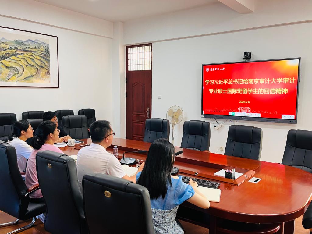 7月6日,best365官网登录入口召开学习习近平总书记给南京审计大学审计专业硕士国际班留学生的重要回信精神学习会,best365官网登录入口全体教职工参加会议。会议由院长李庆瑶主持。