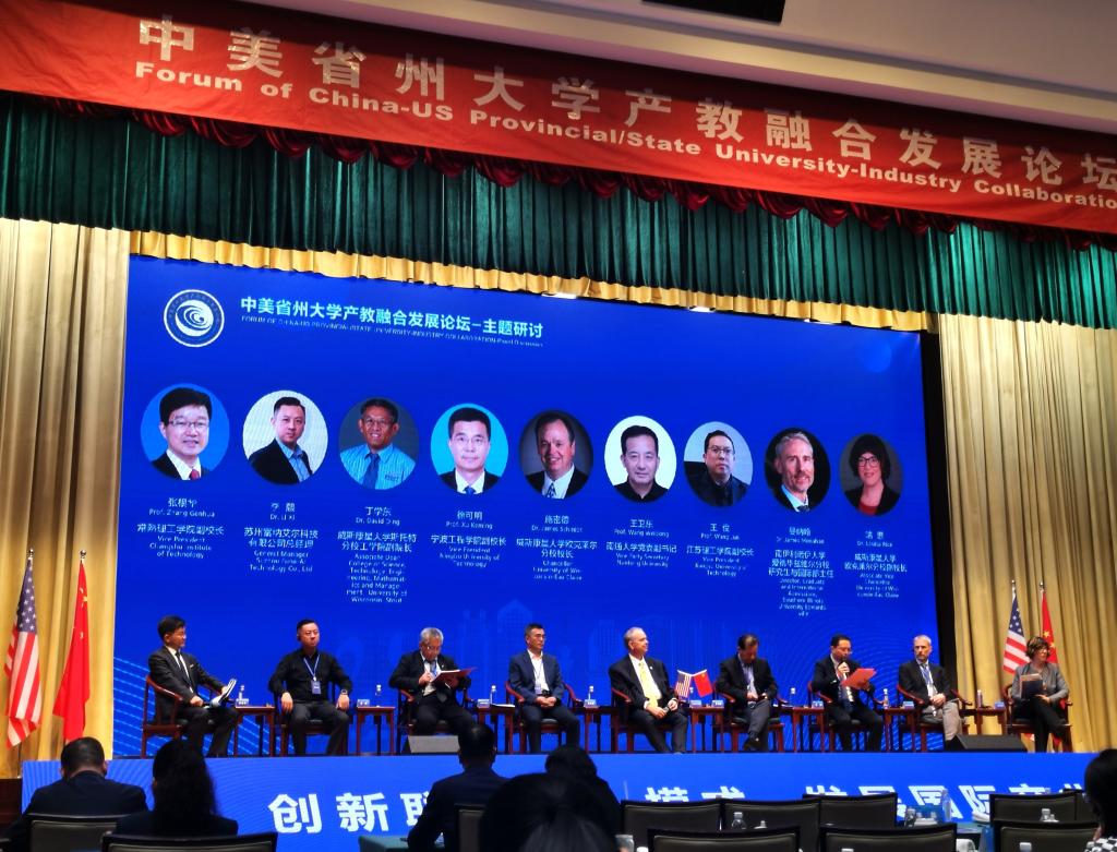 为创新国际化人才培养模式,推进中美省州大学高水平科研合作和国际产学研用合作,10月31日,由中国教育国际交流协会和美国州立大学与学院协会支持、常熟理工学院主办的中美省州大学产教融合发展论坛在常熟会议中心举行。本次论坛邀请50多所中美高校代表和企业代表出席,以“创新中美省州大学联合育人模式,探索国际产业学院发展路径”为主题,聚焦国际教育与产学研用融合,推进中美省州大学人才培养和联合科研,促进中美省州校企合作和人文交流可持续发展。论坛期间,中美省州大学产教融合联合会宣告成立。受校领导委托,best365官网登录入口院长李庆瑶携综合科科长林枫应邀参会。