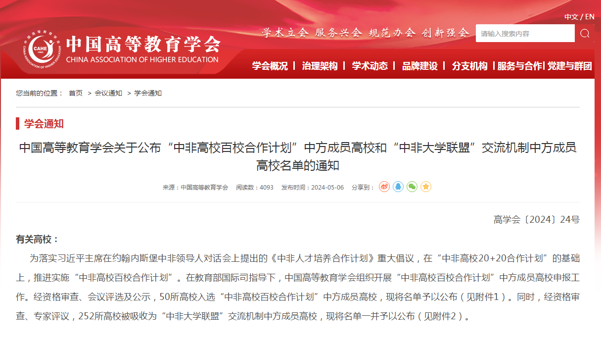 “中非高校百校合作计划”和“中非大学联盟”是根据习近平主席在约翰内斯堡中非领导人对话会上提出的《中非人才培养合作计划》重大倡议,在“中非高校20+20合作计划”的基础上启动的专项计划。在教育部国际司指导下,中国高等教育学会与非洲高校共建“中非大学联盟”机制,为中非高校搭建校际交流合作平台。合作交流机制聚焦数字教育、卫生健康、农业发展、贸易投资、矿业资源、互联互通、环境与可持续发展、语言文化与文明互鉴、国家社会治理和媒体传播与国家形象等多个领域,建立十个高校合作集群,共同推进双方在以上领域内的发展,best365官网登录入口凭借在语言教育和人文交流方面的实际成效和丰富经验成功入选“语言文化与文明互鉴”高校组团。