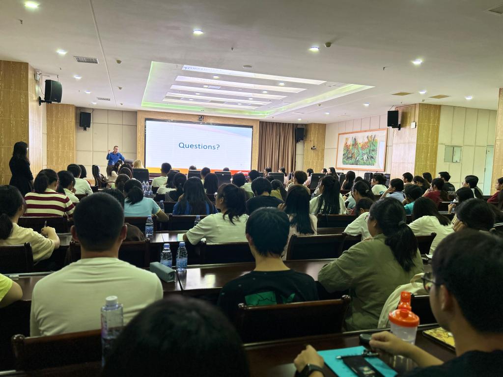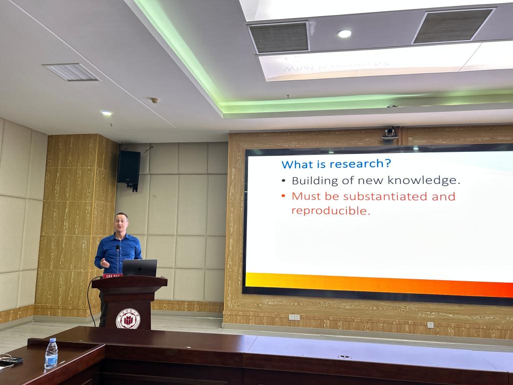 Andrew Roberts教授随后于科信楼1607室为best365官网登录入口师生作题为“To Be An International Researcher”的学术报告。来自历史地理学院、化学化工与环境学院、外国语学院、物理与信息工程学院的百余名师生到场聆听。Andrew Roberts教授首先分享了自己的学术生涯,从个人学习经历到工作后所从事的研究领域,讲述了自己多年从事科学研究的经验和心得。他强调跨学科学习的重要性,鼓励师生积极拓展自己的学术视野和领域,跨越学科边界进行深入研究。他还阐述了如何与国际同行进行合作,提高学术影响力和发表学术论文的技巧,并重点讲述了批判性思维在科学研究的重要性。最后,Andrew Roberts教授与现场师生热烈互动,就如何利用跨境校际资源提升学习能力、如何提高批判性思维能力等问题进行交流解答。本次报告会学术氛围浓厚,与会师生纷纷表示收获颇丰,期待能有机会参与更多高质量的学术交流。